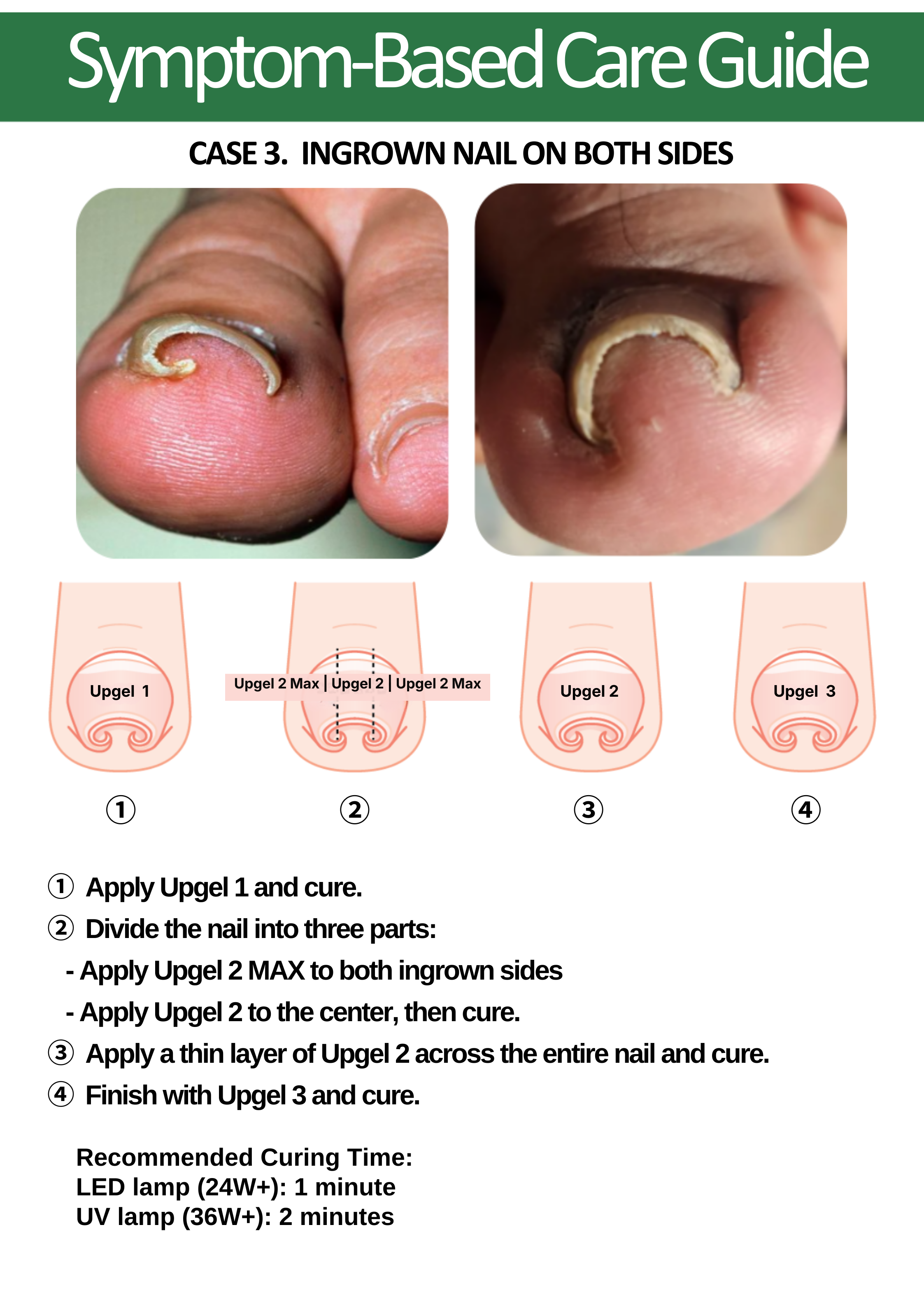 Use the +UPgel 3-Step Treatment application and instantly see results. The nail will continue to improve shape over the next three days.